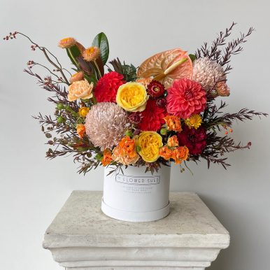 Please note – The images are used as inspiration and we will do our very best to capture the composition of this arrangement. There will be variations in the colours and placement of the flowers as it is dependant on limited market and seasonal availability. If you have specific requirements regarding flower selection, please email us directly.
